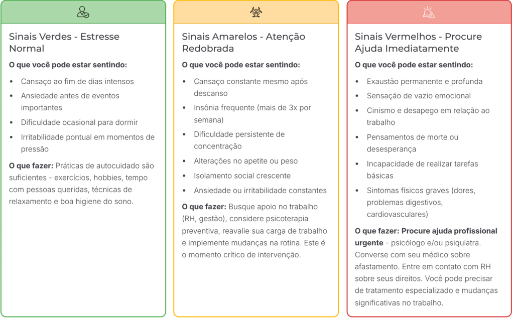 Dica extra: Não tenha vergonha de pedir ajuda. Burnout é doença séria reconhecida pela OMS. Você não é fraco, está doente.