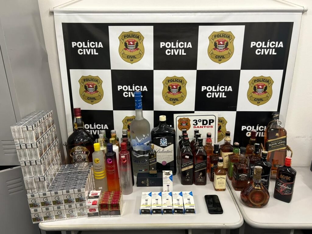 No interior do estabelecimento foram apreendidas 13 garrafas de vodka e 21 de whisky com indícios de adulteração, como tampas violadas, rótulos incompatíveis, falta de selos fiscais e sinais de manipulação irregular. Também foram encontrados 20 maços de cigarros Gift, 5 maços de Eight e 10 maços de Gudang Garam, produtos estrangeiros sem documentação fiscal, além de 6 canetas da marca Mounjaro, medicamento controlado para diabetes tipo 2, sem nota fiscal nem prescrição médica.