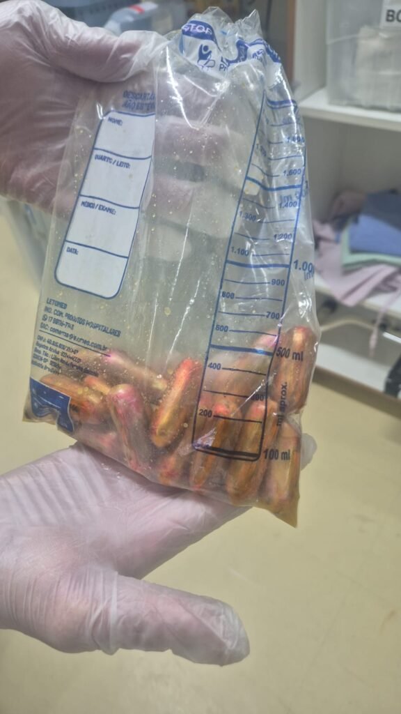 Devido ao estado flagrancial, o indivíduo foi preso, entretanto segue internado, pois, de acordo com a equipe médica, até o momento, ainda restam cápsulas a serem retiradas de seu intestino.