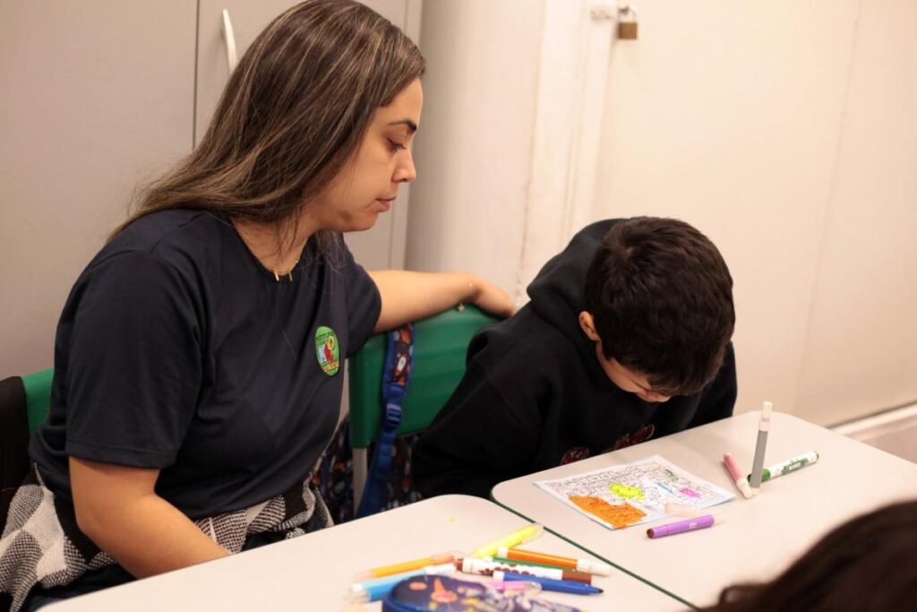 Na unidade, os alunos demonstraram empolgação ao participar da atividade artística, que envolveu a pintura coletiva de ilustrações inspiradas na artista norte-americana conhecida por ‘Bobbie Goods’. Pela manhã, a proposta envolveu as turmas dos 3º, 4º e 5º anos, que se uniram para colorir os desenhos em grupos, criando um ambiente colaborativo e acolhedor.