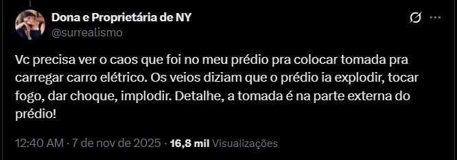 Nos últimos anos, o crescimento da frota de veículos elétricos no Brasil vem transformando a rotina dos condomínios. Junto com a modernização, surgem também diversos mitos, e muitos deles beiram o cômico. A simples instalação de uma tomada para carregar um carro elétrico ainda gera resistência em alguns prédios, com moradores temendo explosões, choques elétricos e até o colapso da estrutura.